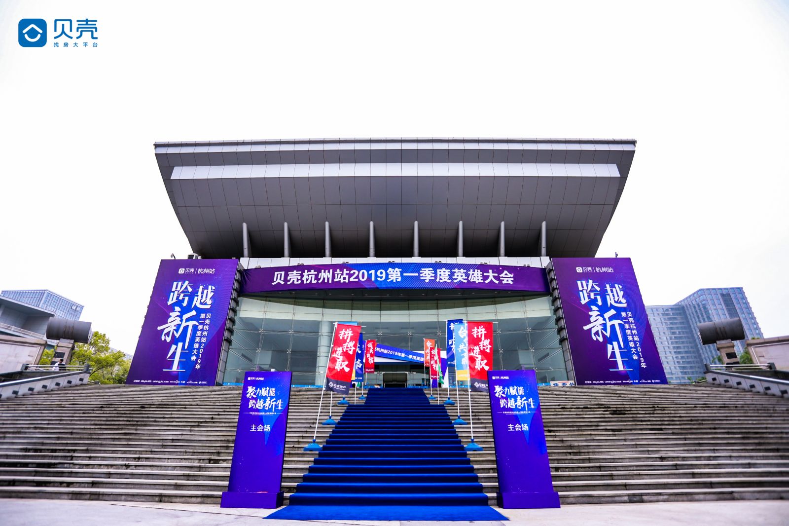 活動名稱:聚力賦能 跨越新生—貝殼杭州站2019第一季度英雄大會 活動地點:蕭山劇院 活動時間:2019.4.25 會議人數(shù):800+ 服務(wù)項目:木工特裝、物料、氣柱機